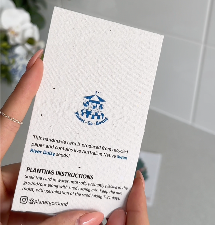 All our cards are embedded with live, non-invasive, native Australian Swan River Daisy seeds!